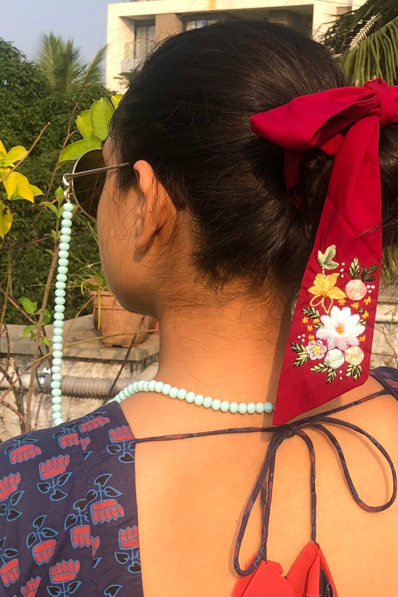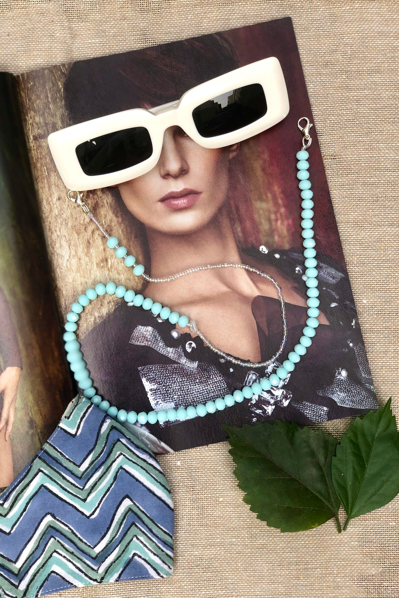 Powder Blue Cut Beads With Rainbow Beads Chain