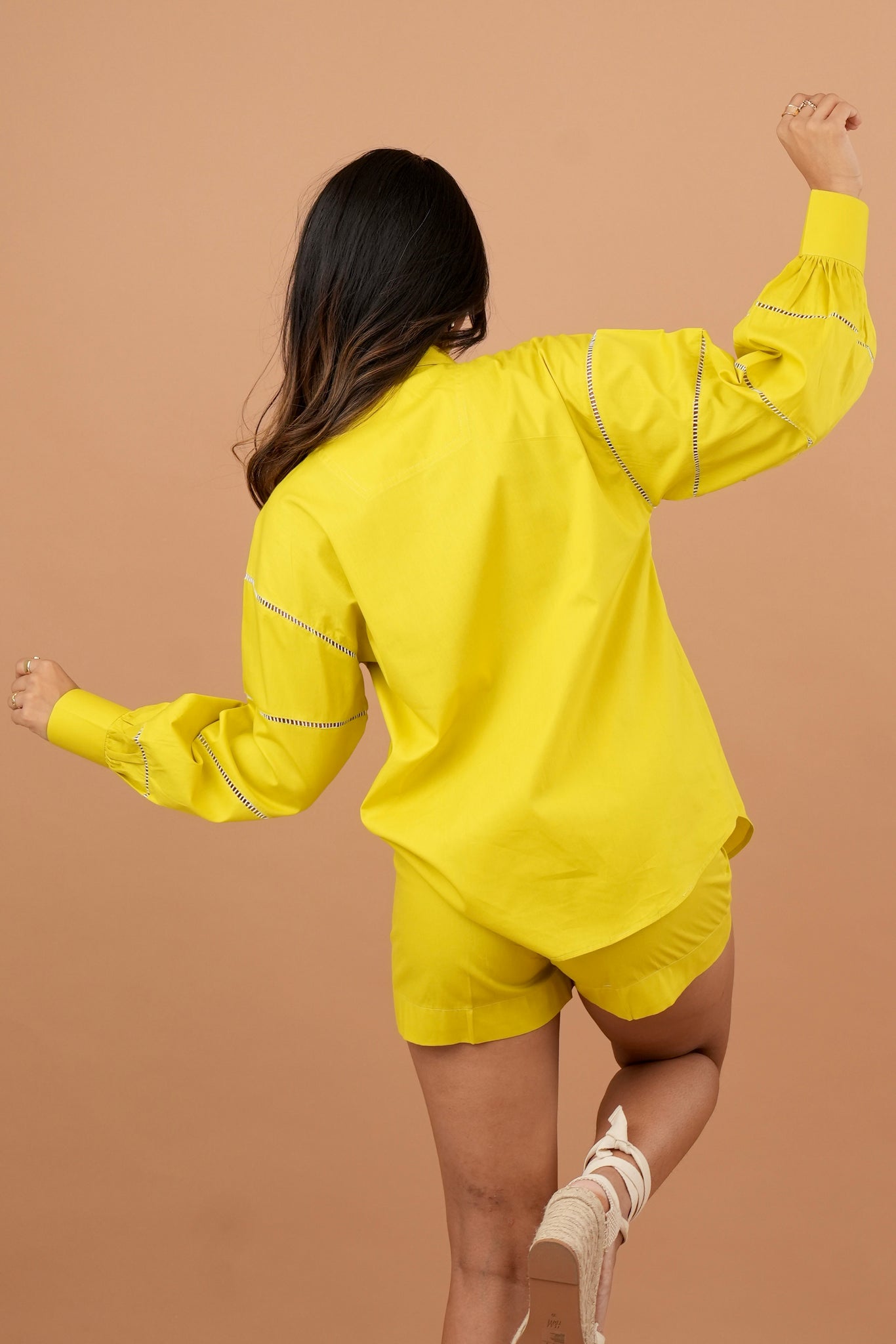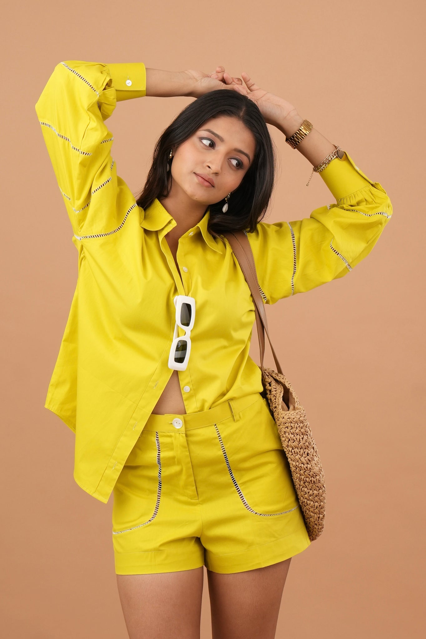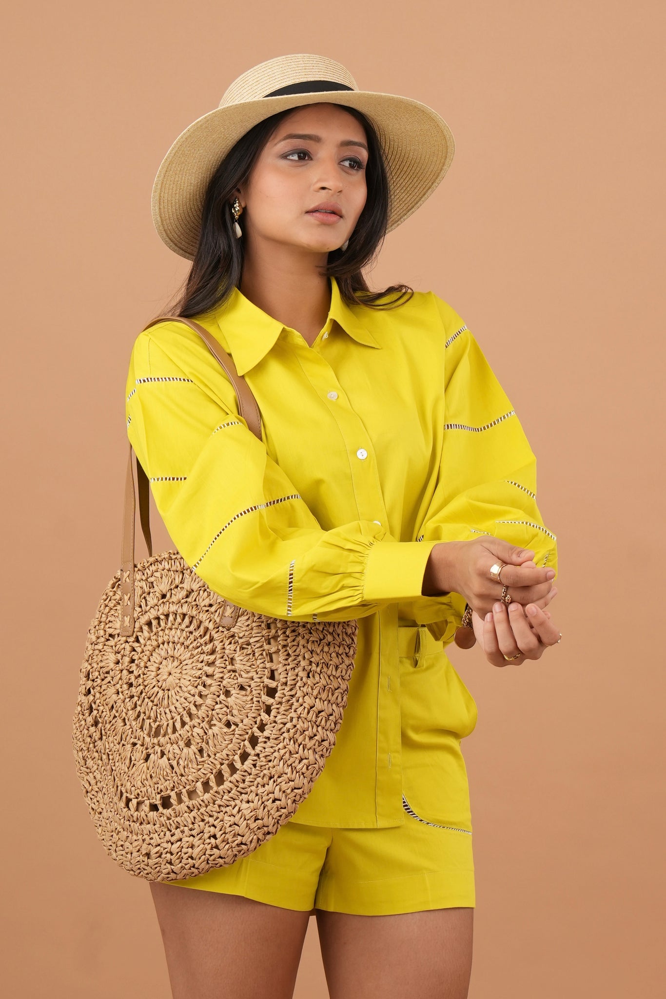 Introducing our striking Nabi Coord Set inspired by the Brimstone Butterfly, from our SS24 NABI collection. The ensemble is crafted from cotton poplin fabric. Its distinguishing features include its eye catching color and the lace detailings, inspired by the line markings on a butterfly. It’s easy to style and can be worn together as well as separately. For more styling tips you can Whatsapp Us on: +919324284176