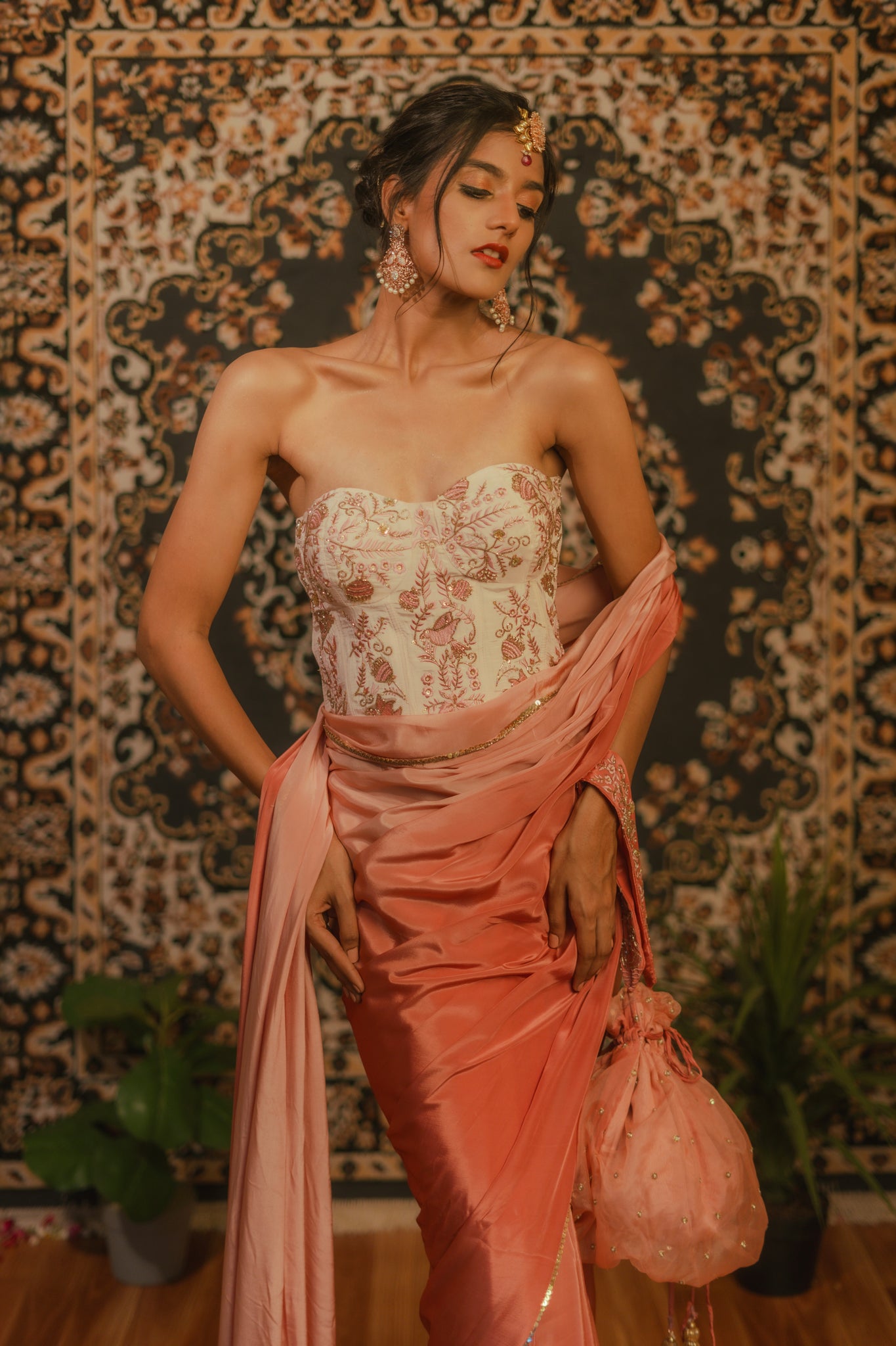 The Corset blouse embroidery, delicate like bird songs, whispers tales of freedom and movement.