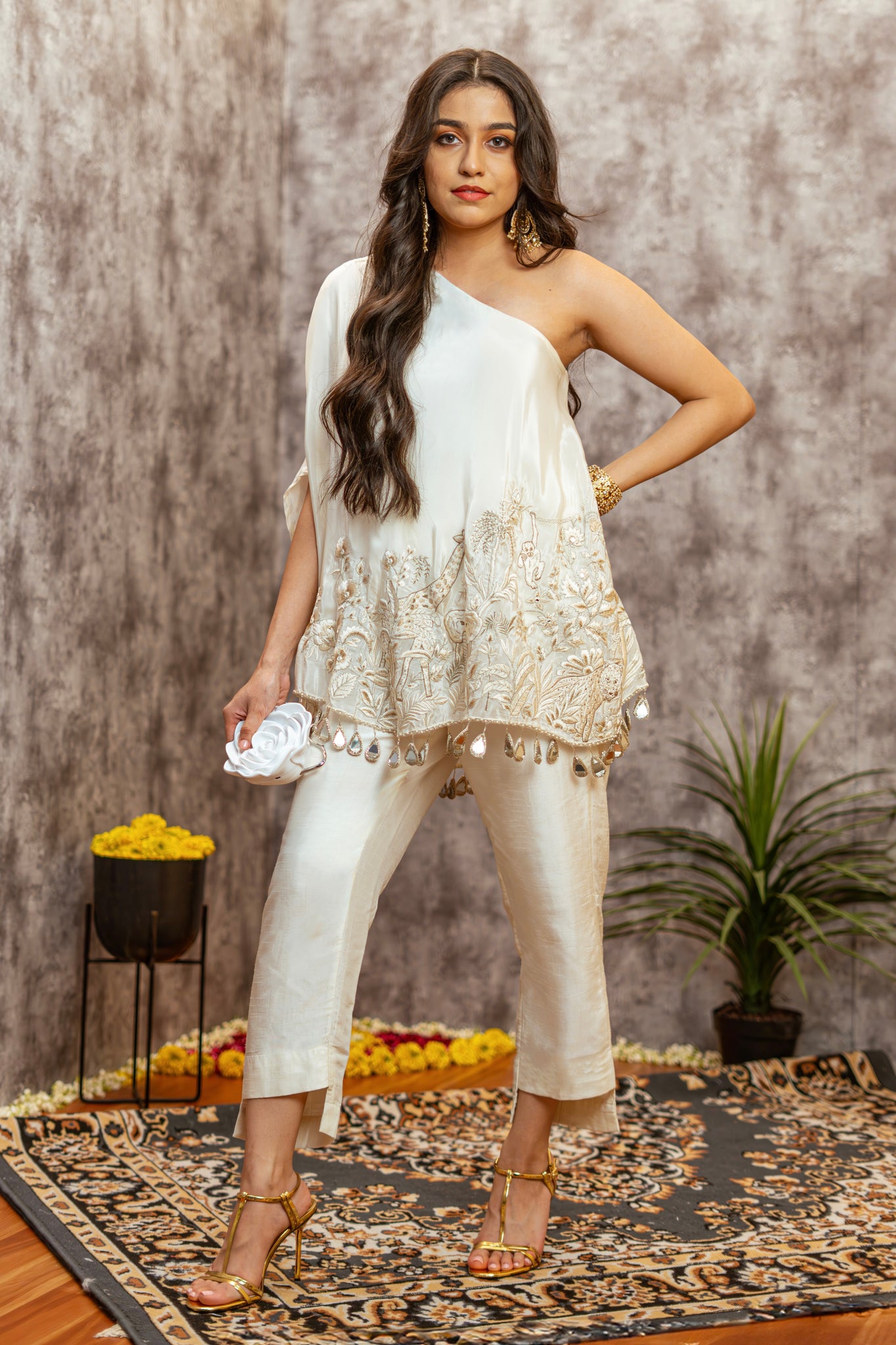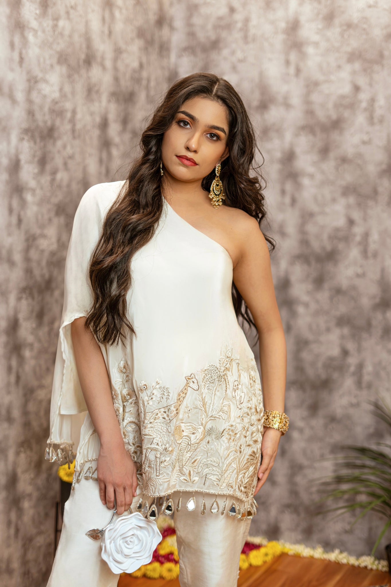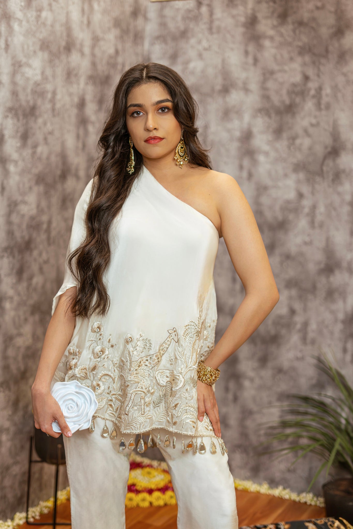 Inspired by our Jungles, this One Shoulder Jungle Co-ord set depicts a remarkable array of animals that co-exist, forming complex ecosystems marked by interdependence and adaptation.