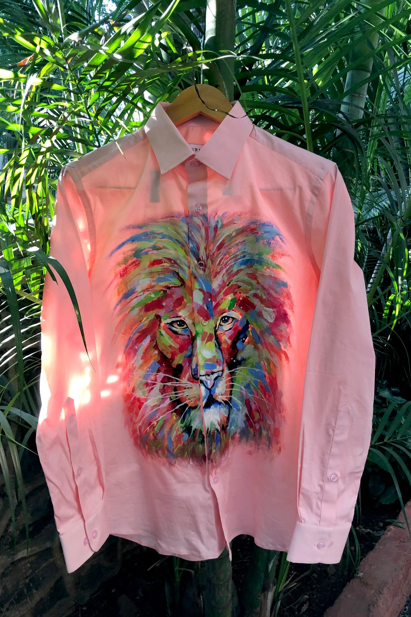 Our completely Hand painted Lion On A Baby Pink Shirt Is So Perfect For Any Occasion!