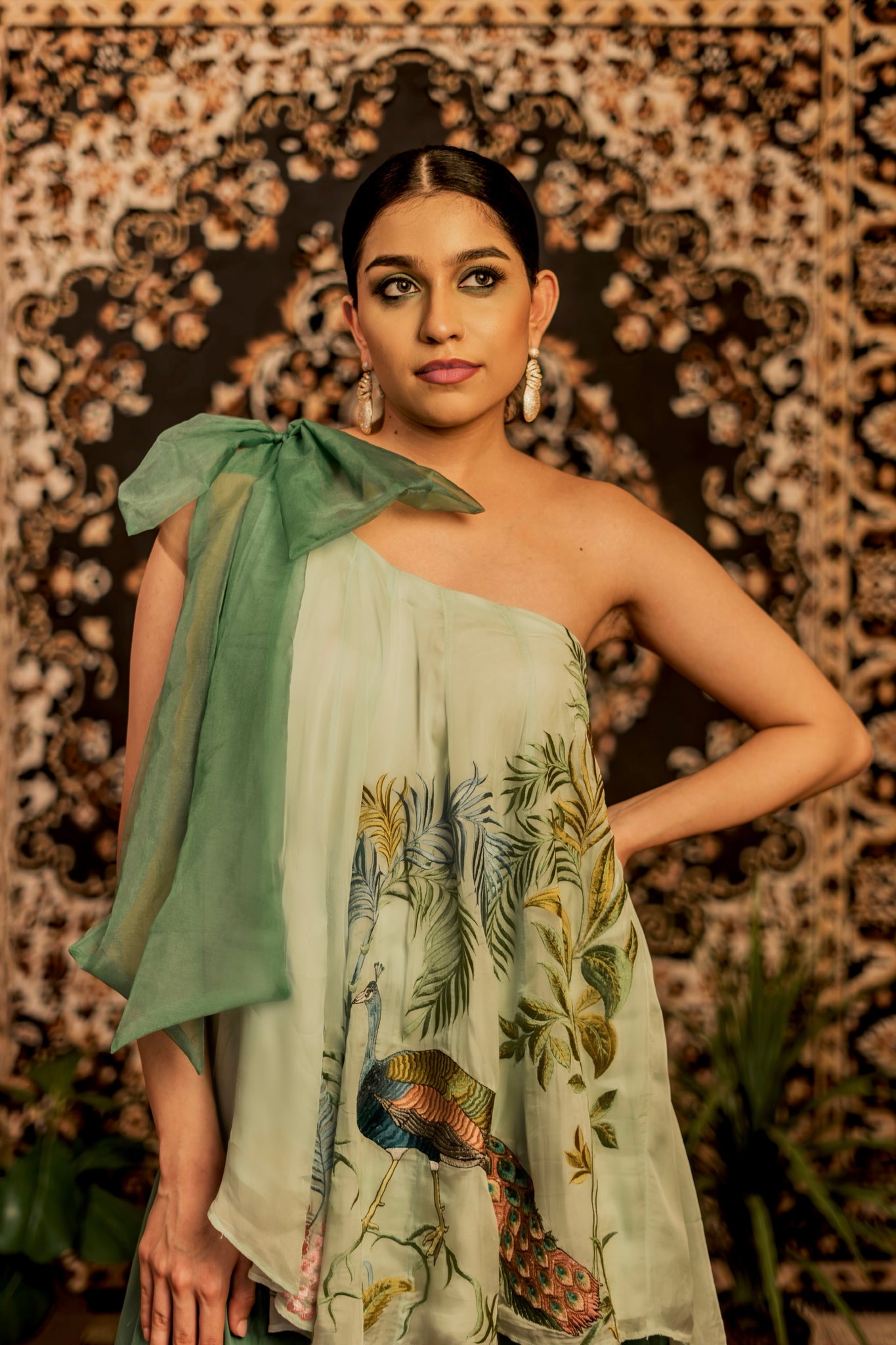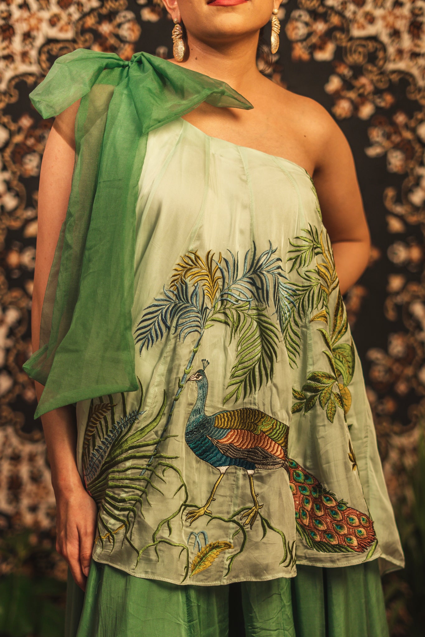 Just like a peacock in the forest, its vibrant feathers shimmering in the sunlight, adds a touch of grace to the wild, a living masterpiece, the peacock brings a touch of elegance to the untamed landscape our Morni palazzo set lets you flow gracefully, with soft, light fabric that shimmers with elegance and ease. Intricately embroidered by skilled artisans, this Palazzo set screams class, elegance and beauty.