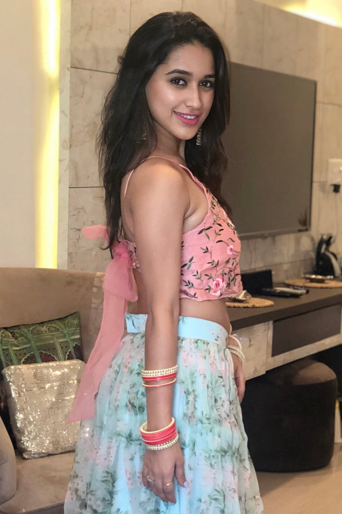 A Peach Rose Embroidered Tie Back Blouse to be paired with an Into-Western Skirt or any other bottom.
